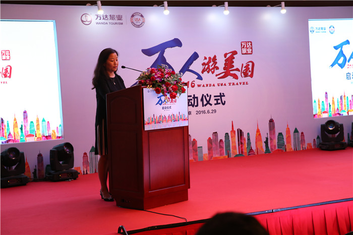 萬達(dá)集團(tuán)莫躍明副總裁、美國旅游推廣局中國區(qū)總監(jiān)李彥珺女士、萬達(dá)旅業(yè)副總經(jīng)理徐道明、中科惠澤常務(wù)副總裁李帥先生出席活動(dòng)并致辭。